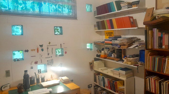 Para hacer un libro se necesita algún espacio físico. Desde mi perspectiva, si no están dadas determinadas condiciones materiales es muy difícil llevar a cabo un proyecto de estas características. En ese sentido, soy un privilegiado: tengo mi espacio. Arranqué con una impresora muy mala – lo que no aconsejo hacer-, pero después incorporé una impresora mejor, entre otras herramientas, como una Minerva. Tengo una computadora de escritorio que tiene Word y no mucho más, con eso me arreglo.