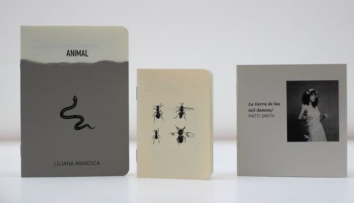 Las últimas publicaciones fueron La tierra de las mil danzas, de Patti Smith (colección Discos); Animal de sangre fría, Liliana Maresca (colección Acto creativo); y ¿Me extrañarías entre los animales? (colección Criaturas). Cada ejemplar es realizado de manera hogareña, impreso, abrochado y refilado a mano; papel bookcel ahuesado de 80 g para los interiores y cartulinas coloreadas a la masa de 120 g para las tapas.